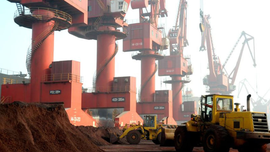 Trabalhadores transportam solo contendo elementos de terras raras para exportação em um porto em Lianyungang, província de Jiangsu, China. Foto de arquivo da Reuters