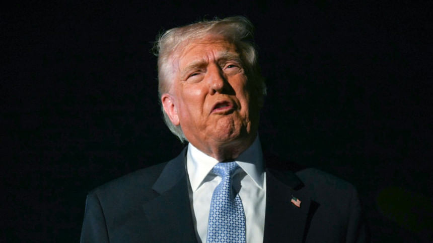 O presidente dos EUA, Donald Trump, fala com repórteres antes de embarcar no Força Aérea Um ao partir do Aeroporto Internacional de Palm Beach, em West Palm Beach, Flórida, em 16 de novembro de 2025. Foto: AFP