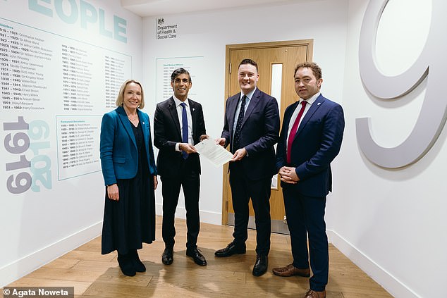 Ex-primeiro-ministro conservador Rishi Sunak esta noite juntou-se o Partido Trabalhista e Liberal Democrata políticos enquanto entregava a mensagem em mãos ao secretário de saúde do Departamento de Saúde e Assistência Social.