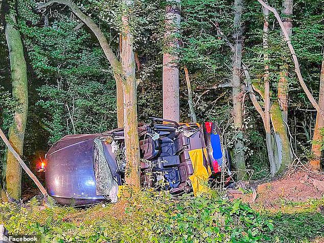 As imagens tiradas depois mostram o veículo mutilado deitado de lado com um pára -brisa quebrado.