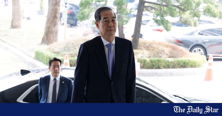 O primeiro-ministro sul-coreano Han Duck-Soo chega ao complexo do governo em Seul, Coréia do Sul, 24 de março de 2025. Jeon Heon-Kyun/Pool via Reuters