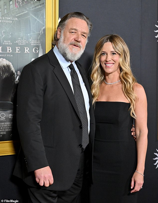Russell Crowe falou sobre seu relacionamento com sua namorada muito mais jovem, Britney Theriot, no 60 Minutes de domingo. Na foto: Russell e Britney no vermelho no mês passado em Los Angeles