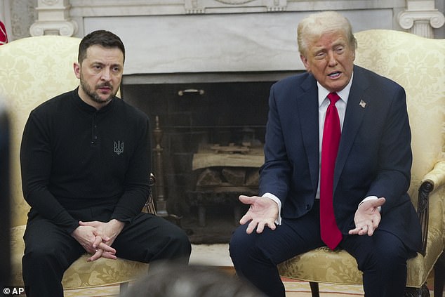 Donald Trump e JD Vance arredondados em Volodymyr Zelensky como uma cena de Dogs Reservoir