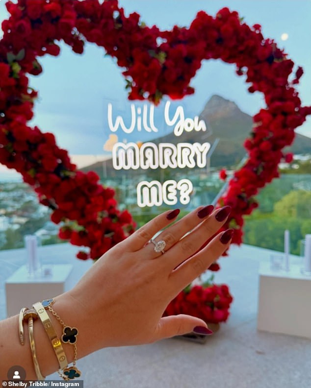 Shelby legendou a postagem: ‘SIM, um milhão de vezes. Você é o amor da minha vida. Mal posso esperar para me casar com você’.