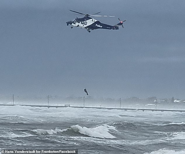 Um surfista britânico 'inexperiente' se afogou em uma praia de Melbourne depois que sua prancha aparentemente quebrou durante uma tempestade (foto: um helicóptero na área)