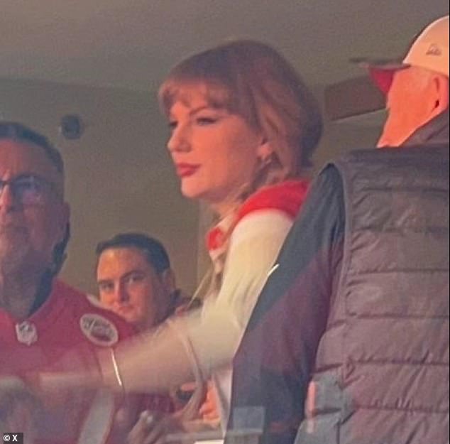 Mais Swifties com olhos de águia também a viram no fundo de um vídeo no Instagram compartilhado pelo amigo de Kelce, Aric Jones, mostrando um grupo de amigos da estrela do Chiefs fazendo uma foto comemorativa na suíte.