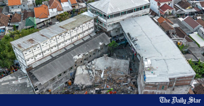Parte do prédio de vários andares na ilha de Java da Indonésia entrou em colapso de repente na semana passada, quando os estudantes se reuniram para orações da tarde.