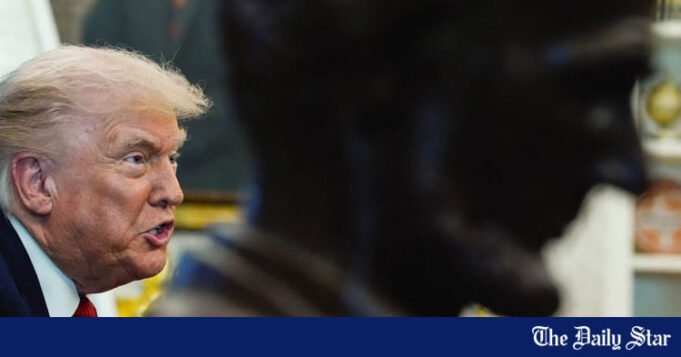 O presidente dos EUA, Donald Trump, por trás de um busto do ex -presidente dos EUA, Abraham Lincoln, participa de um evento para assinar uma ordem executiva que autoriza a construção de uma estrada de acesso ao distrito de mineração de Ambler, no Alasca, na Casa Branca, em Washington, DC, EUA, 6 de outubro de 2025. Reuters