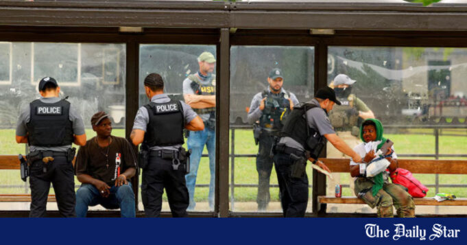 Policiais verificam indivíduos na rodoviária de Anacostia em Washington, DC, EUA, 20 de agosto de 2025. Foto: Reuters