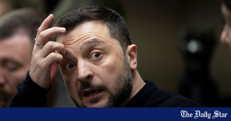 O presidente ucraniano Volodymyr Zelenskiy gesticula durante uma reunião com membros da mídia nos arredores de Londres, Grã -Bretanha, 2 de março de 2025. Reuters