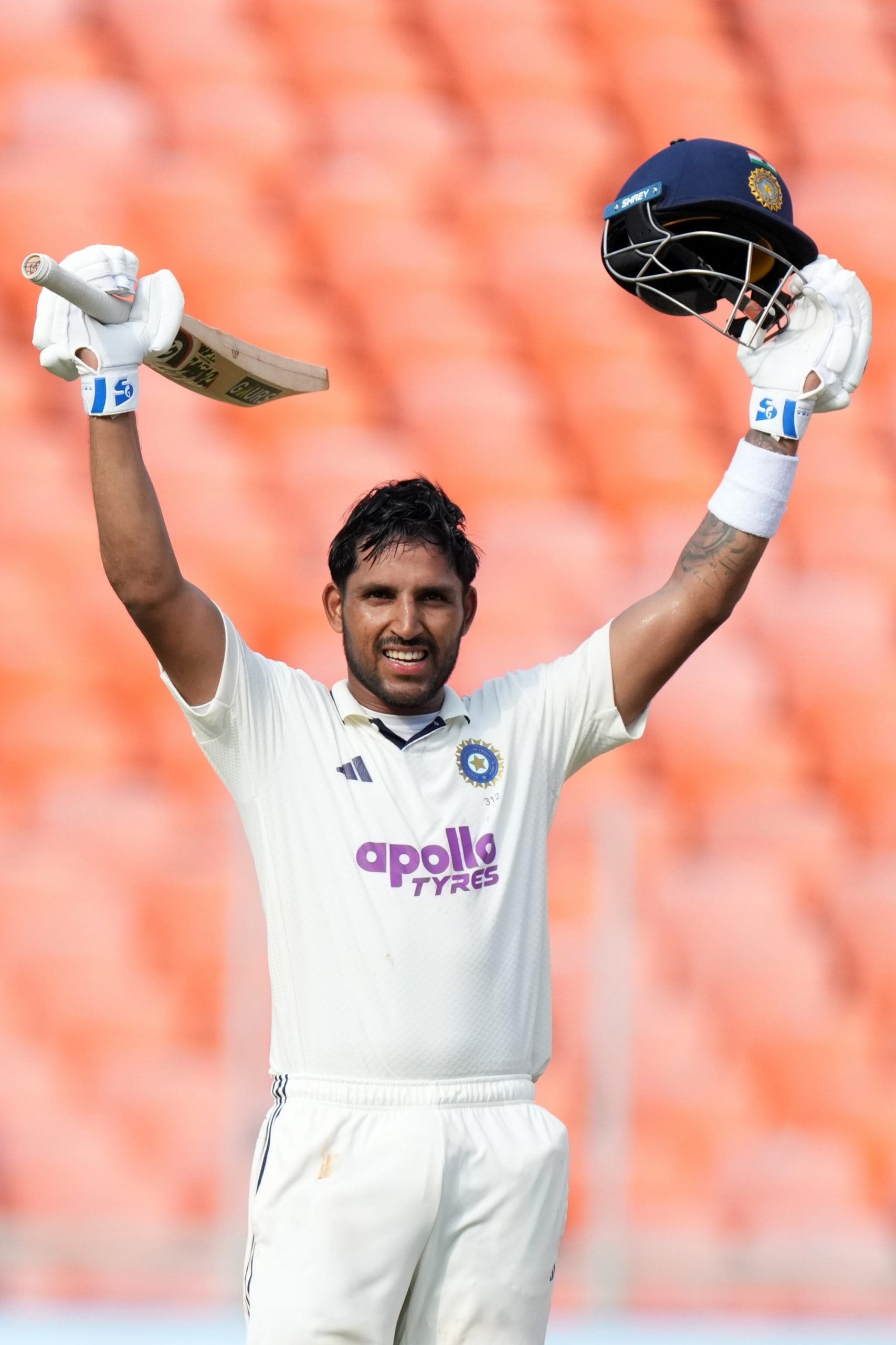 Dhruv Jurel marcou seu século de inauguração (125 corridas) para a Índia em 3 de outubro de 2025, em Ahmedabad contra as Índias Ocidentais. Ele está jogando a partida em andamento como o patrocínio designado Wicketkeeper. (Crédito da imagem: AP)