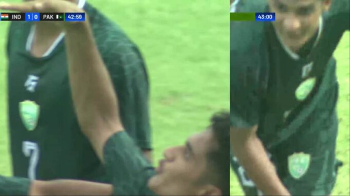 Depois de marcar seu primeiro gol, Muhammad Abdullah, do Paquistão, imitou um avião batendo, um gesto amplamente interpretado como zombando dos jatos Rafale da Índia que foram derrubados no início deste ano.