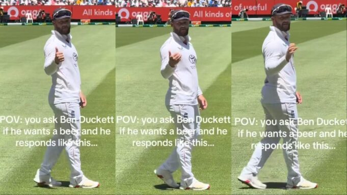 Durante o segundo dia do quarto teste em Melbourne, alguns fãs australianos notaram o vídeo viral de Duckett e o provocaram perguntando se ele precisava de uma cerveja.