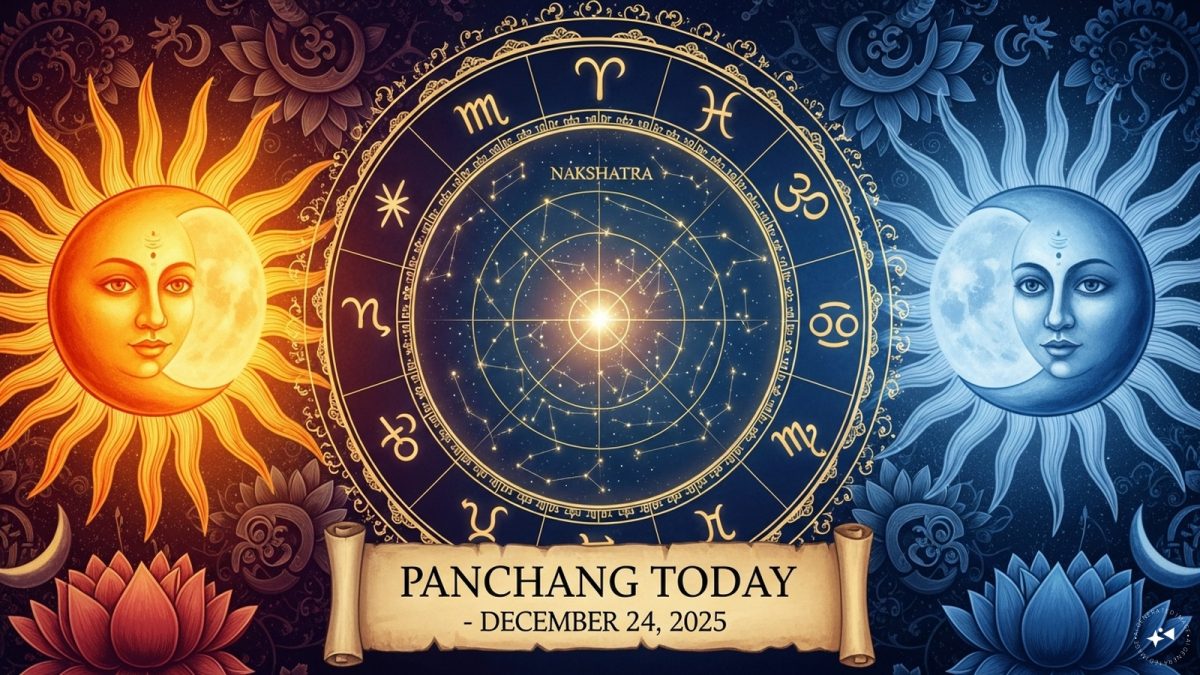 Aaj Ka Panchang, 24 de dezembro de 2025: Obtenha detalhes precisos sobre o calendário hindu de hoje, incluindo tithi, vrat, nakshatra, yoga, horários do nascer/pôr do sol e shubh e ashubh muhurat.