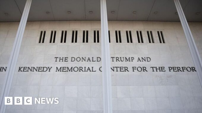 O conselho do Kennedy Center, que está repleto de aliados de Trump, votou no início deste mês para renomear a instituição como Centro Memorial Donald J. Trump e John F. Kennedy para as Artes Cênicas. Nova sinalização foi adicionada ao exterior do edifício no dia seguinte.