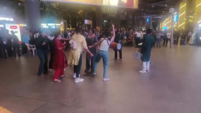 Os passageiros começaram a dançar no aeroporto de Mumbai.