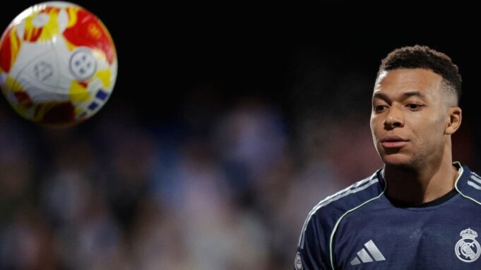 Kylian Mbappe, do Real Madrid, reage durante a partida de futebol da Copa del Rey entre Talavera e Real Madrid, em Talavera de la Reina, Espanha, quarta-feira, 17 de dezembro de 2025. (AP Photo / M. Berengui)
