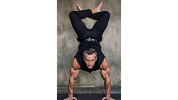 O governador da Califórnia, Gavin Newsom, compartilha uma foto dele fazendo uma pose de ioga. (X)