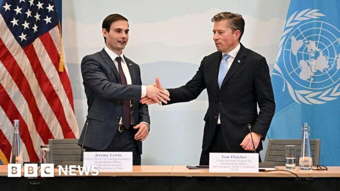 O anúncio foi feito por Jeremy Lewin, subsecretário de ajuda externa do presidente Trump, e Tom Fletcher, chefe de ajuda emergencial das Nações Unidas, em Genebra.