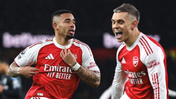 Trossard converteu um passe de Jurien Timber para marcar o terceiro gol de seu time aos 69 minutos, antes de Jesus encerrar o jogo como uma disputa com seu chute excelente para ajudar os Gunners a se afastarem na liderança.