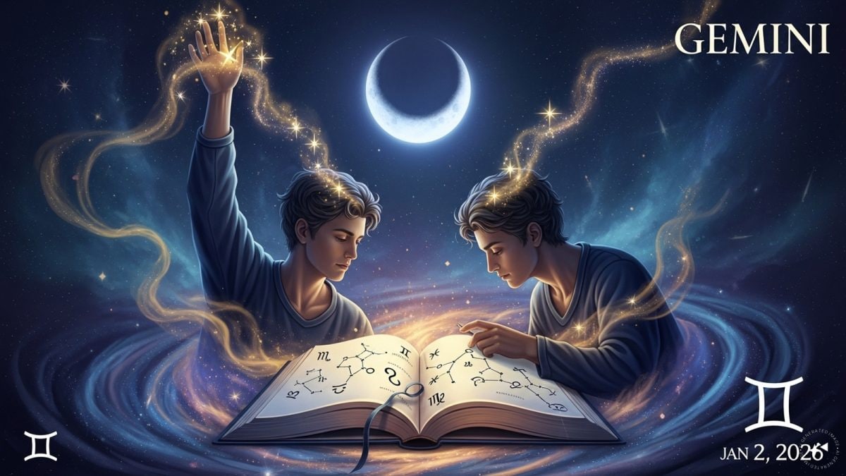 Horóscopo de Gêmeos Hoje, 2 de janeiro de 2026: Gêmeos se conecta com pessoas experientes em busca de respeito e clareza, administra os negócios com discrição e enfrenta desafios financeiros.