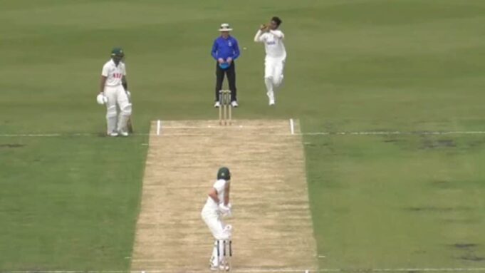 Equipe de críquete da Índia Sub -19 vs Austrália Sub -19 Equipe de críquete: O capitão da Austrália Sub19, Will Malajczuk, venceu o lançamento da moeda e optou por bater primeiro contra os visitantes no 2º e último teste da juventude da série em andamento. A Austrália Sub19 foi lançada por 135 em 43,3 overs. Alex Lee Young com mais 66 anos de idade, enquanto Henil Patel e Khilan Patel compartilharam seis postigos entre eles para a Índia.