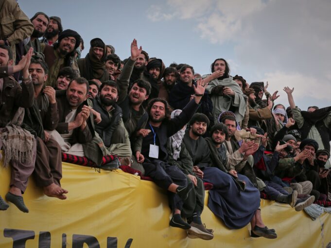 Buzkashi, a competição equestre nacional do Afeganistão, apresenta cavaleiros de elite que devem carregar um pacote embrulhado em couro – historicamente uma carcaça de cabra, mas agora um fac-símile pesado – através de uma linha de gol designada para ganhar pontos.