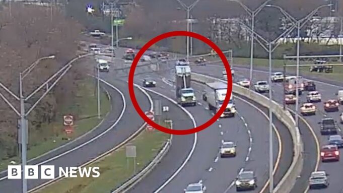 Imagens divulgadas pelo Departamento de Transportes de Ohio mostraram o caminhão parando logo após atingir a sinalização suspensa.