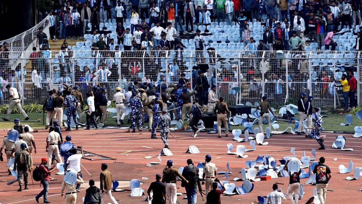 O caos se instalou no Salt Lake Stadium depois que os fãs não tiveram uma visão clara de Lionel Messi durante o GOAT India Tour 2025. (X)