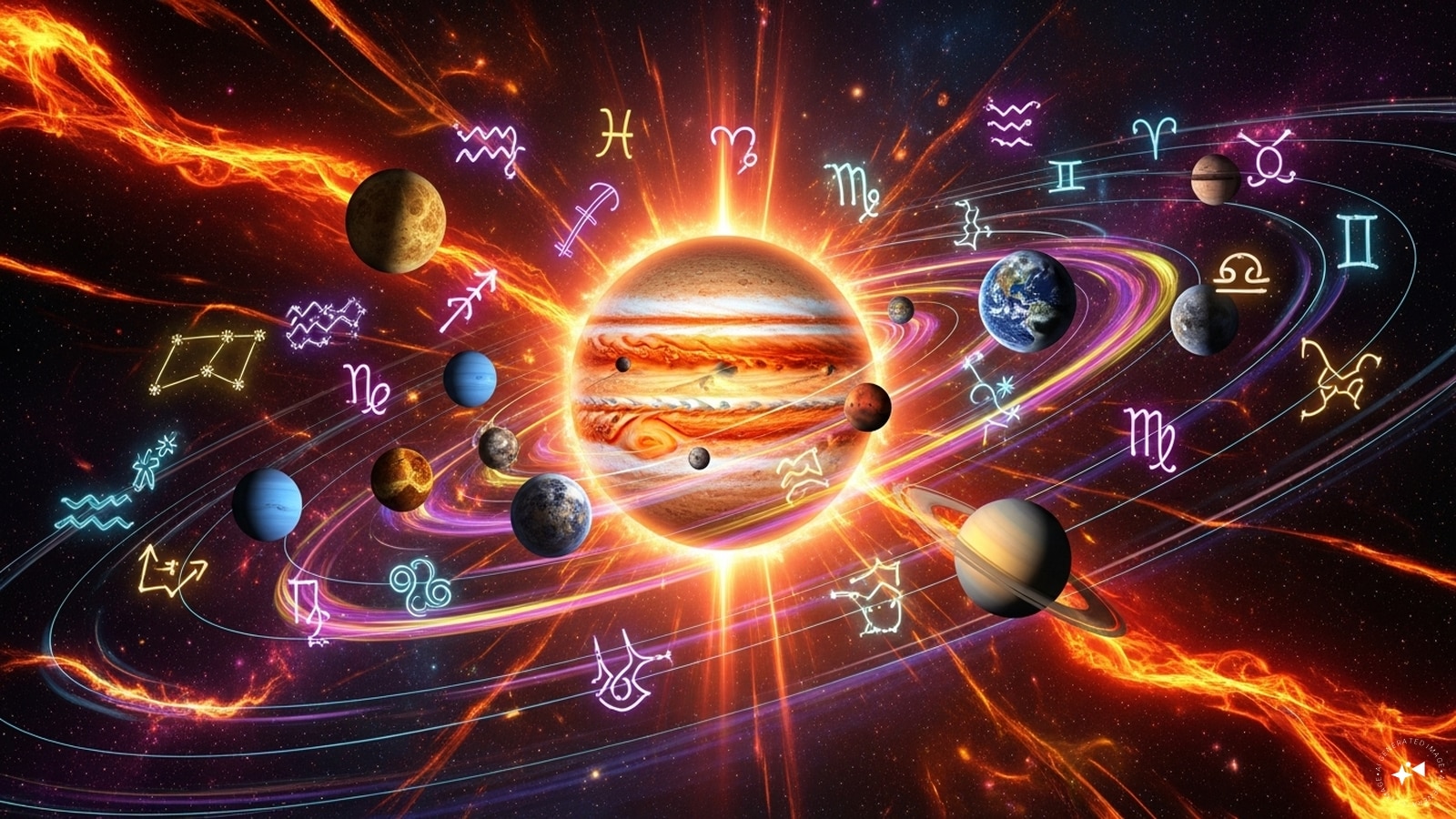 Também conhecido como Guru, representa conhecimento, sorte, espiritualidade, filhos e vida conjugal na astrologia. Seu movimento afeta a inteligência, a tomada de decisões, o ensino superior, a fortuna e o crescimento espiritual. Em 2026, Júpiter fará duas transições importantes. No início do ano, formará um poderoso Gajakesari Yoga em alinhamento com a Lua, prometendo uma mudança para melhor para muitos.