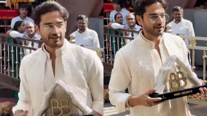 Recém-saído de sua vitória no Bigg Boss 19, Gaurav Khanna visitou o Templo Siddhivinayak de Mumbai para buscar bênçãos e oferecer gratidão. Radiante de entusiasmo, ele carregou seu troféu reluzente nas mãos e parou do lado de fora do templo para posar para os paparazzi. Seu sorriso brilhante e olhos brilhantes refletiam o orgulho e a alegria de sua recente vitória.