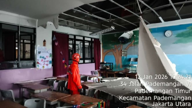 Jacarta – A forte chuva que caiu em Jacarta na segunda-feira, 12 de janeiro de 2026, pela manhã, causou teto SDN (Escola primária estadual) 05 East Pademangan, Norte de Jacarta (Norte de Jacarta) entrou em colapso.
