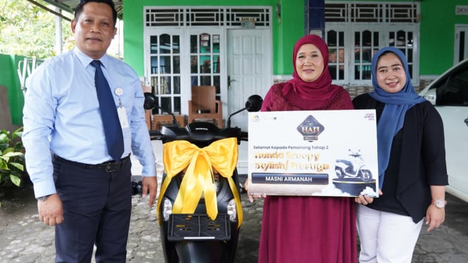 Jacarta – Banco Mega Syariah entregou um prêmio em forma de motocicleta para clientes vencedor do programa Ponto Haji Bênção Mega Sharia de segundo nível.