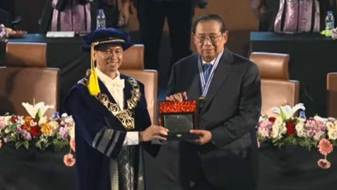 O prêmio foi concedido pelo Chanceler do ITS, Prof. Bambang Pramujati, à SBY no auge do 65º aniversário e ao ITS Lustrum XIII em Graha ITS, Surabaya, terça-feira, 11 de novembro de 2025.