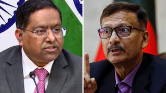 O Conselheiro de Relações Exteriores de Bangladesh, Touhid Hossain (à direita), e o porta-voz do Ministério das Relações Exteriores (MEA), Randhir Jaiswal. (Arquivo)