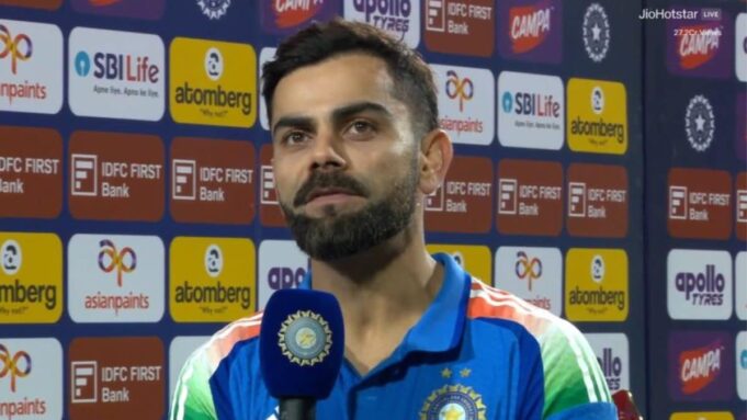 Virat Kohli na apresentação pós-jogo