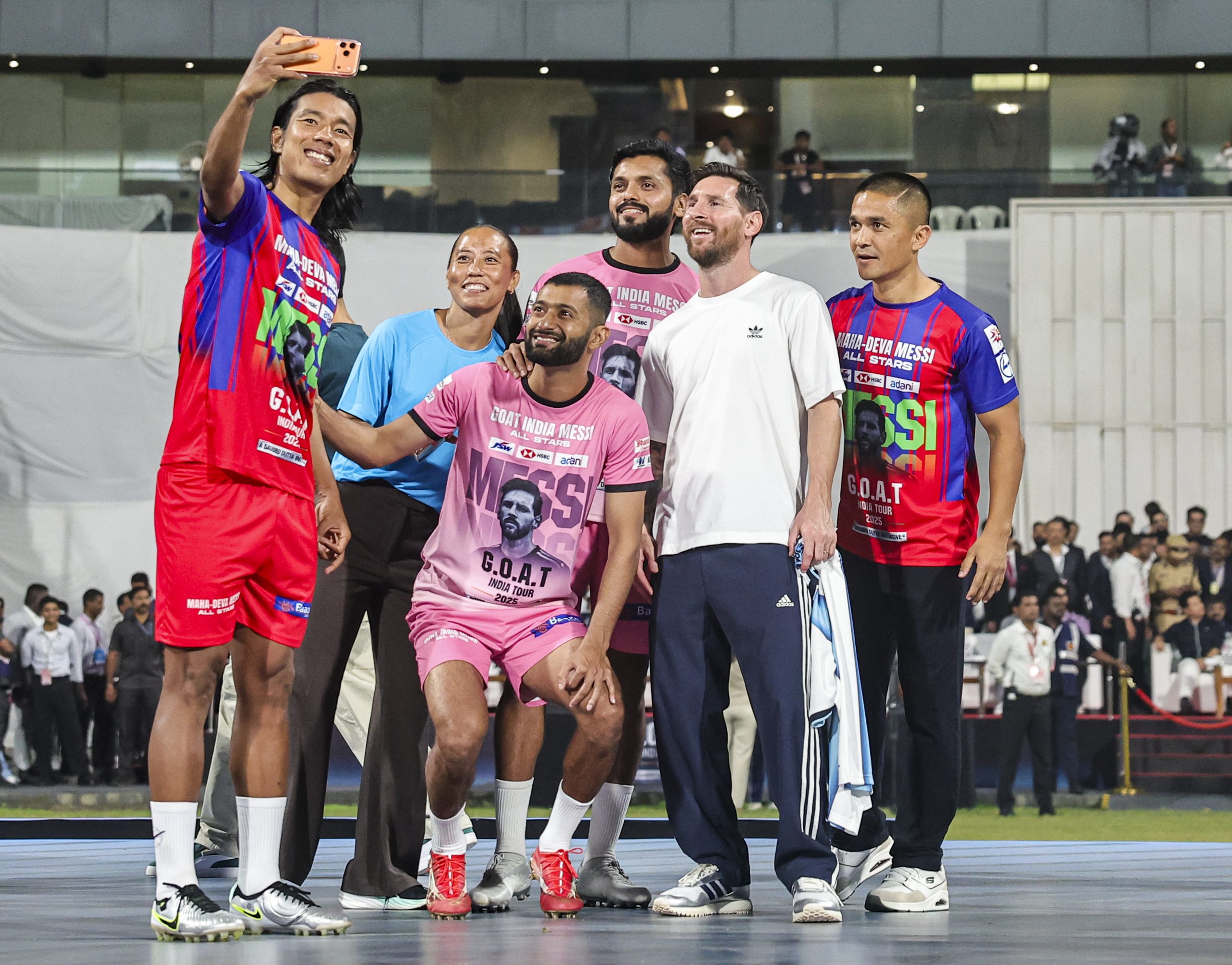Messi, ao lado dos jogadores de futebol Luis Suarez e Rodrigo De Paul, deslumbrou os torcedores no Estádio Wankhede, em Mumbai, no dia 14 de dezembro. Durante o evento, Messi compartilhou um momento especial com Chhetri, presenteando a lenda do futebol indiano com uma camisa autografada da Argentina.