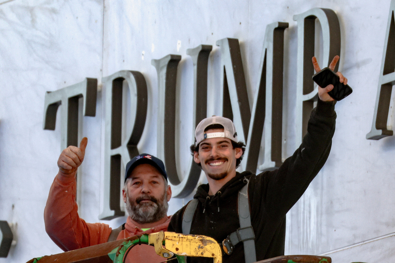 Os trabalhadores começaram a colocar o nome do presidente Trump no Centro John F. Kennedy de Artes Cênicas um dia depois de a Casa Branca ter anunciado que ele seria renomeado como “Centro Trump-Kennedy”. O anúncio provocou reação imediata dos oponentes políticos do presidente e da família de JFK.