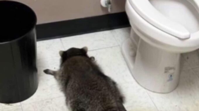 Um guaxinim bêbado e dormindo foi encontrado no banheiro de uma loja de bebidas na Virgínia. (PA/X)